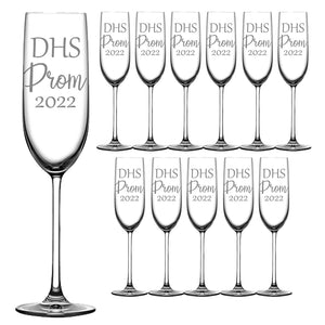 High School Prom Engraved Glass Champagne Toasting Flutes Set of 12