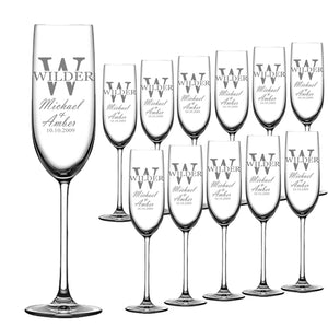 Split Font Engraved Wedding Glass Champagne Flutes Set of 12
